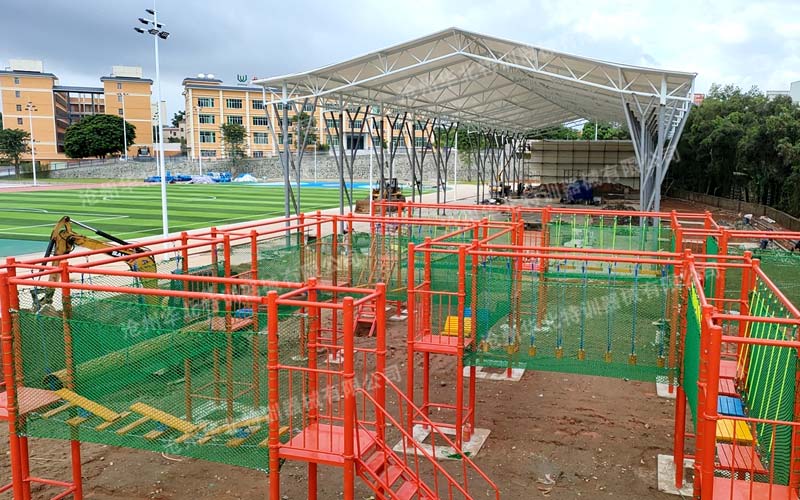 規格:占地42米長×6米寬,主體長41.5米×寬6米×高8米。 包含項目:獨木橋、翹板橋、橫渡天梯、吊索橋、斷橋、攜手并進、相互依存、禮讓通行、網墻(2…